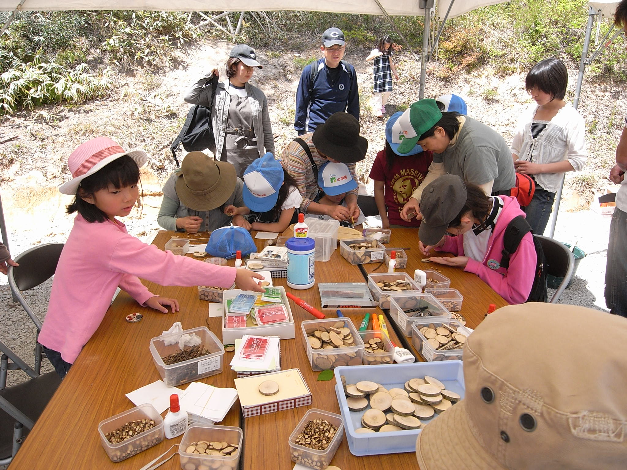 森の学校を開放して、クラフト、丸太切り大会、動物博士とお散歩、アースウォーク等々、家族や友人と1日くつろげる自然体験イベントです。