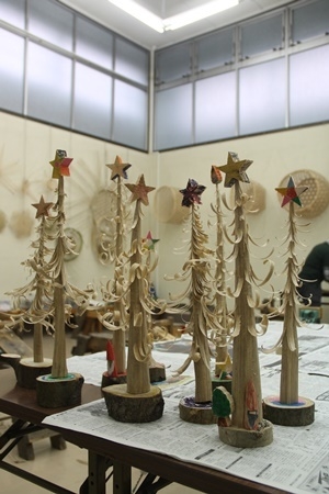 ネイチャーガイドと一緒に秋の森を散策し、削り馬を使ってクリスマスツリーを制作しました。