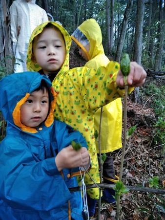 その後、山菜の見分け方を教わりながら、森でコシアブラやタラ、タカノツメ等を摘みました。
