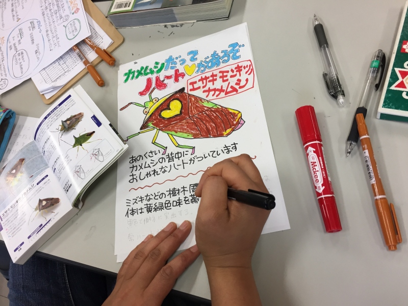 里山散策や、動植物の調査実習、里山の動植物について伝えるための看板づくりなどを行いました。