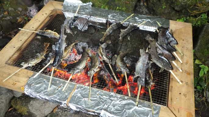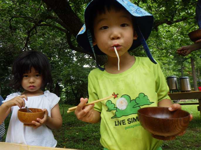 冷たい芝川の恵みであるマスのつかみ取りと、里山に生える竹を使った流しうどんは、とっても盛り上がりました♪