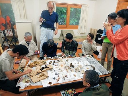 午後からは、「食べれるキノコ・毒キノコが知りたい」というニーズにお応えして、雨プログラムで、津田先生の毒キノコ講座です。なかなかおもしろいエピソードも多くてすっかり津田先生のキノコワールドに惹きこまれてしまいました。