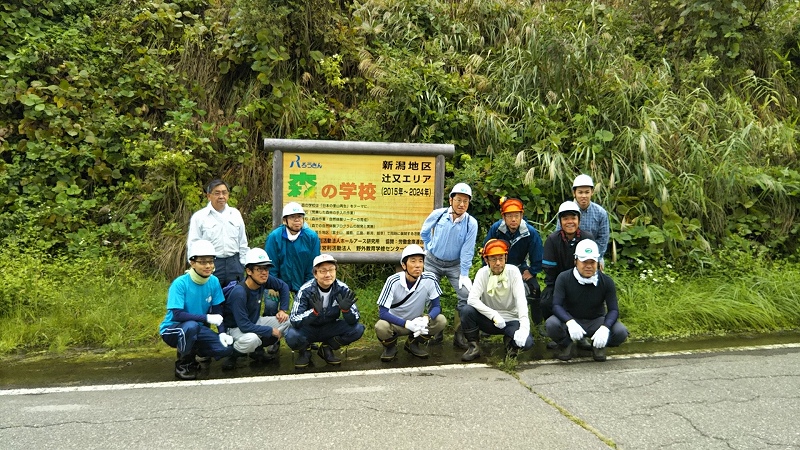 谷側へ落ちそうになってしまった木にロープを巻いて皆で引っ張り上げました。