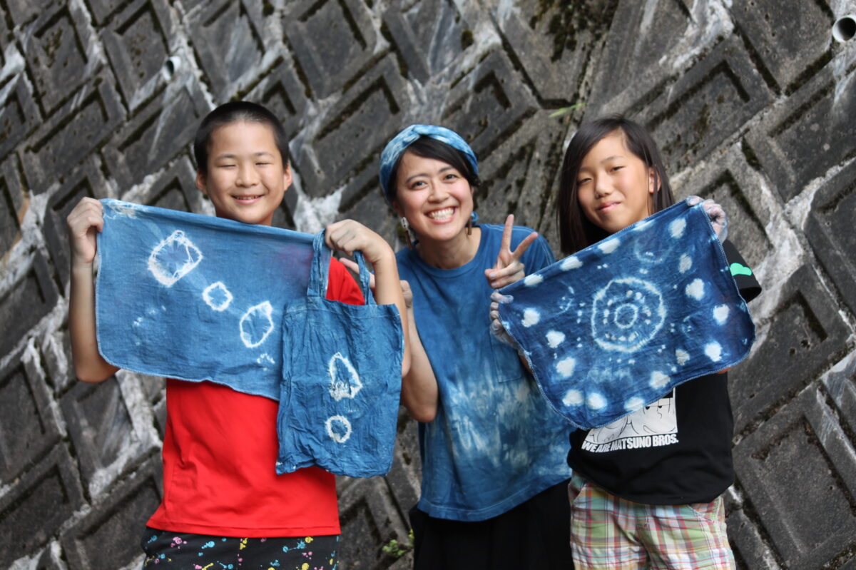 今年は天気もよく、毎日川遊びに行っている子もいました。その他にも藍染できれいなカバンや布巾を作ってみたり、野外料理でうり坊をさばいてみたり、釣りをしてみたり・・・色んな体験がありました!