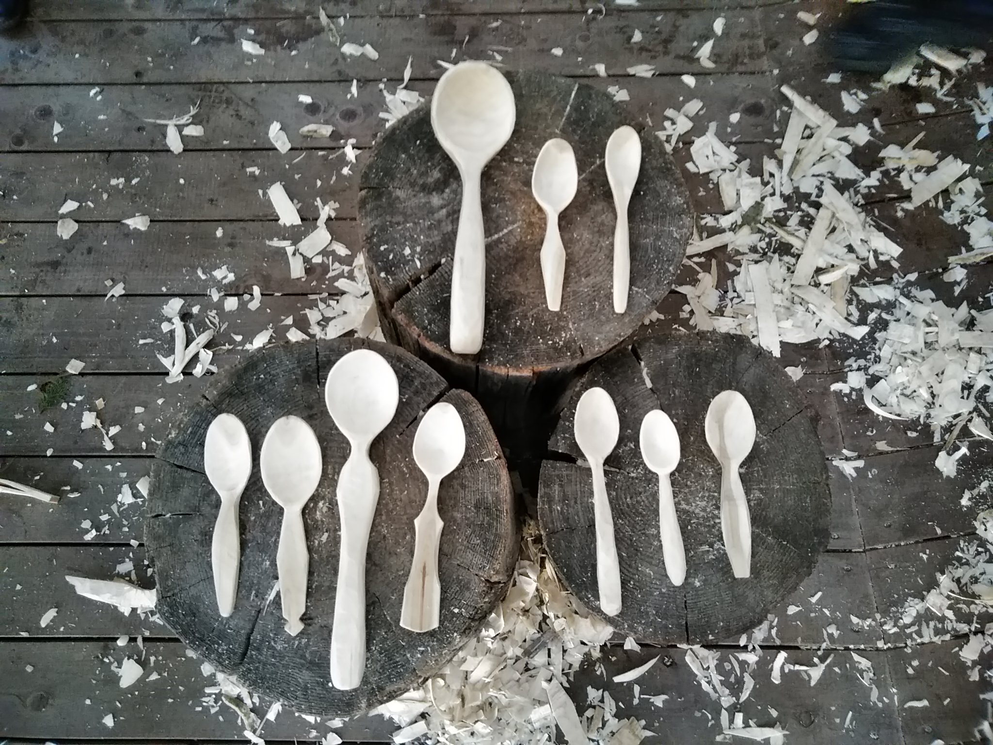 見本のスプーンや持参のお気に入りのスプーンを参考に、ひたすら削ってもらいます。