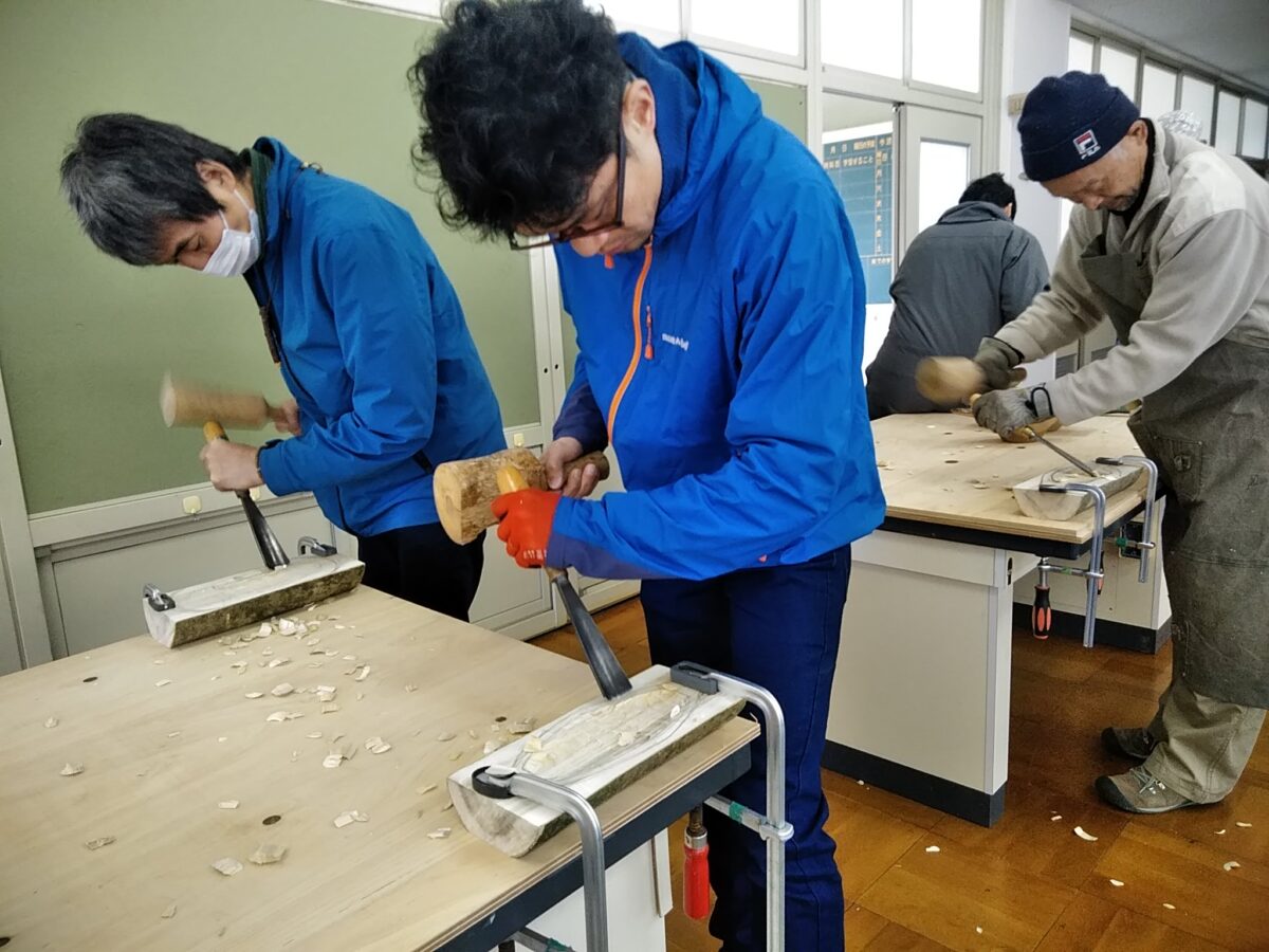 新年最初の講座は「木彫りの器」づくり。山から伐り出したコシアブラの木を使いました。
