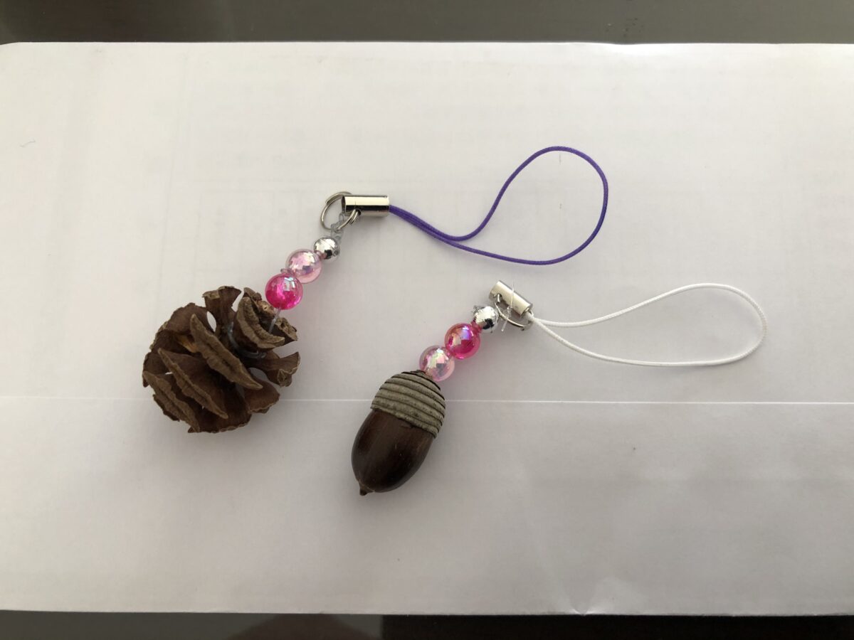 木工工作は親子中心に木の実ストラップを作り、楽しみました♪