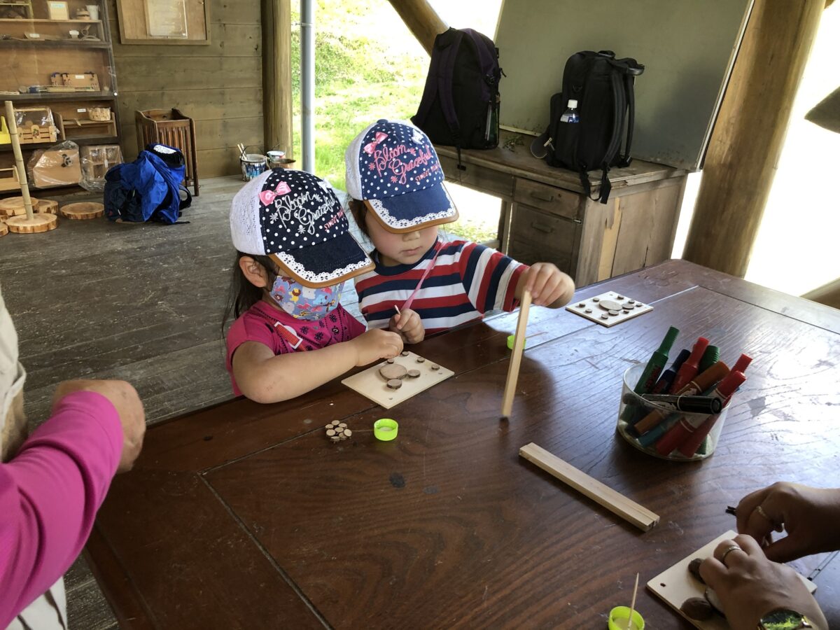 初夏の森を歩いてみよう」をテーマに2班編成で新緑の森の散策を行いました。自然体験では、森林療法体験をしてもらいました。