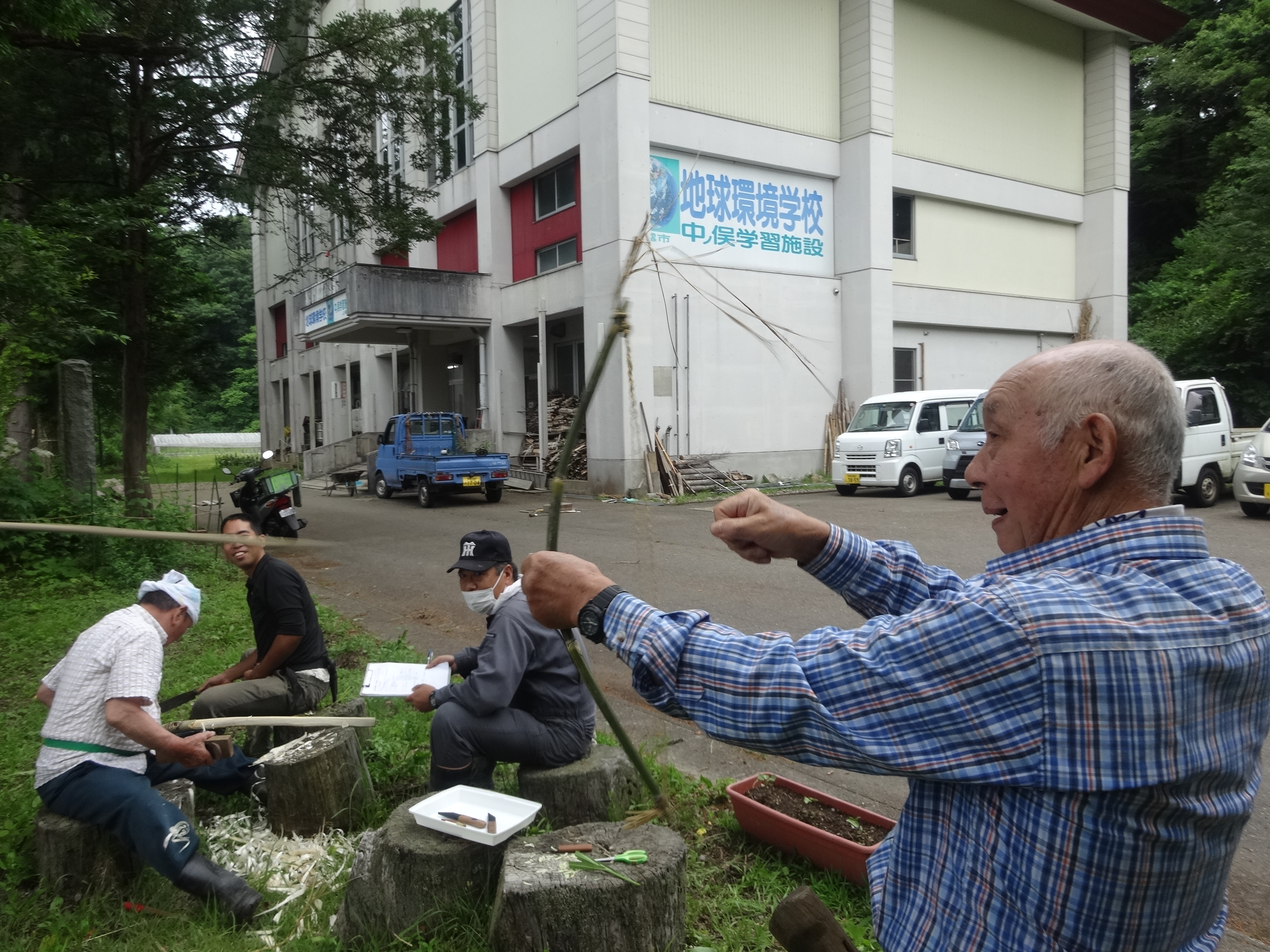 中ノ俣の「昔遊びの達人」の皆さんに「昔遊びの道具作り」を教えていただきました。