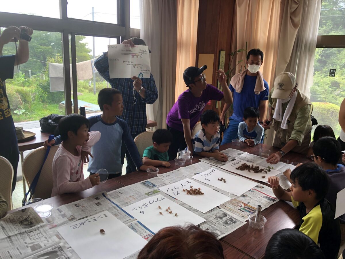 もう1班は勉強会の後、親子中心にセミの抜け殻を探しながら観察会を行い、終了後にセミの抜け殻を分類しました。