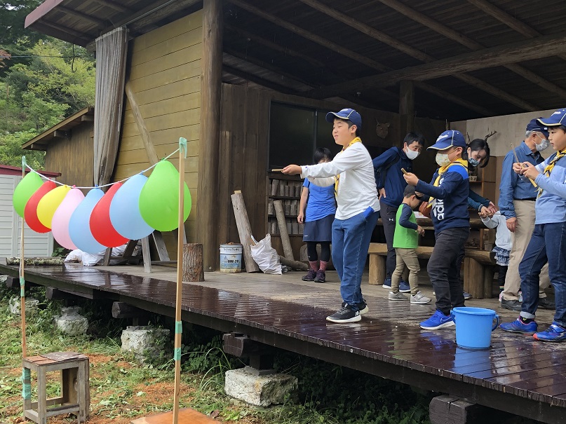 木工工作は木の親子で水鉄砲を作り、風船の的あてをして楽しみました。