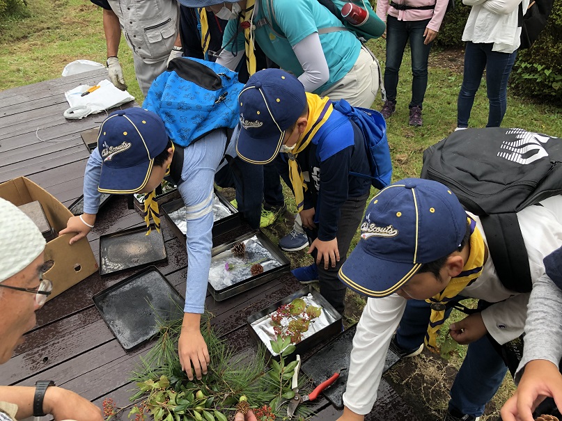 自然体験活動は、観察会で採取した松ぼっくりなどを材料に花炭作りを実施しました。