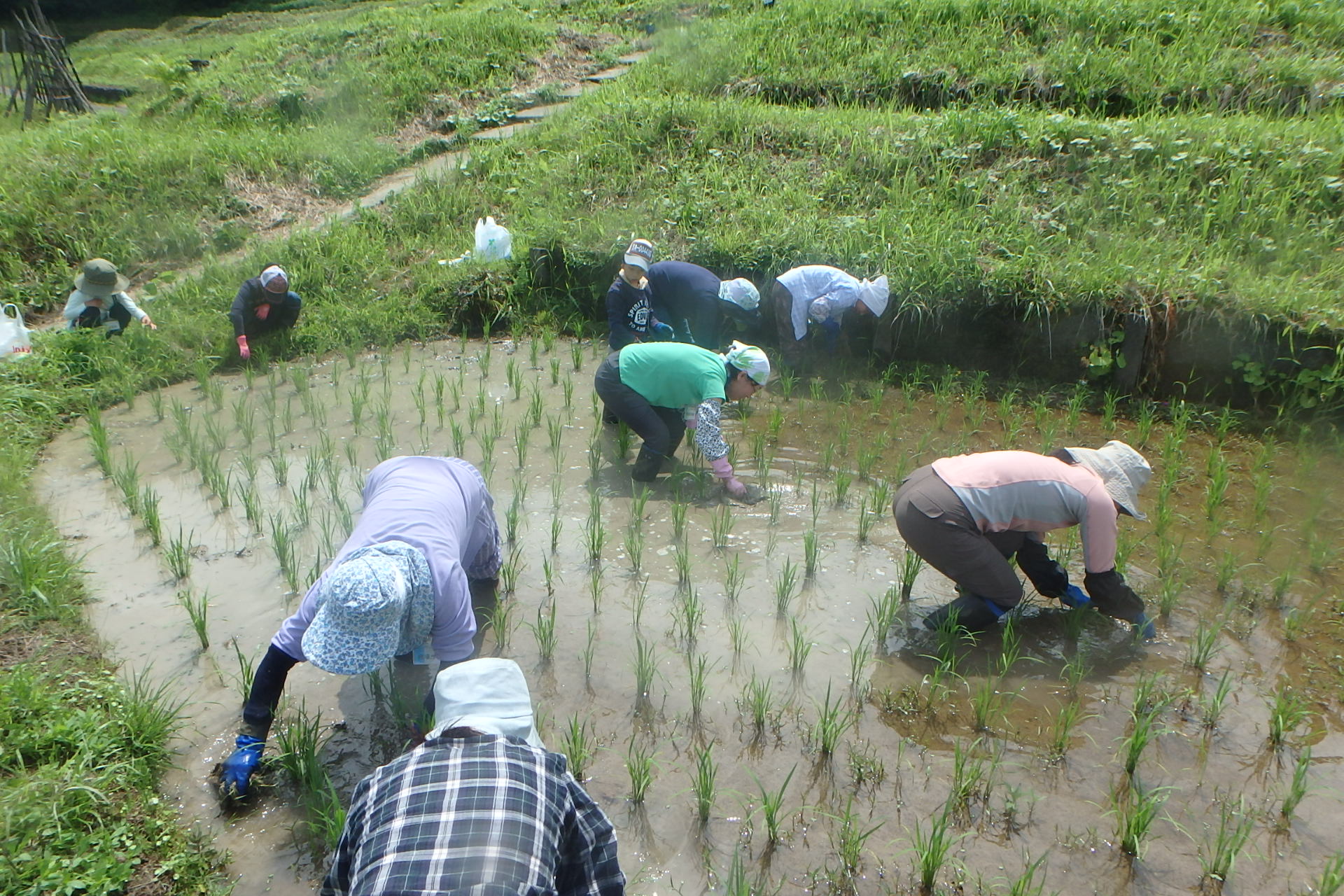 年間を通じて棚田での耕作技術を学び、森と棚田の保全活動を行う講座です。6月の一日体験講座は「田の草取り・畦草刈り編」です。地域の方々との交流を楽しみながら、清々しい汗をかきましょう!