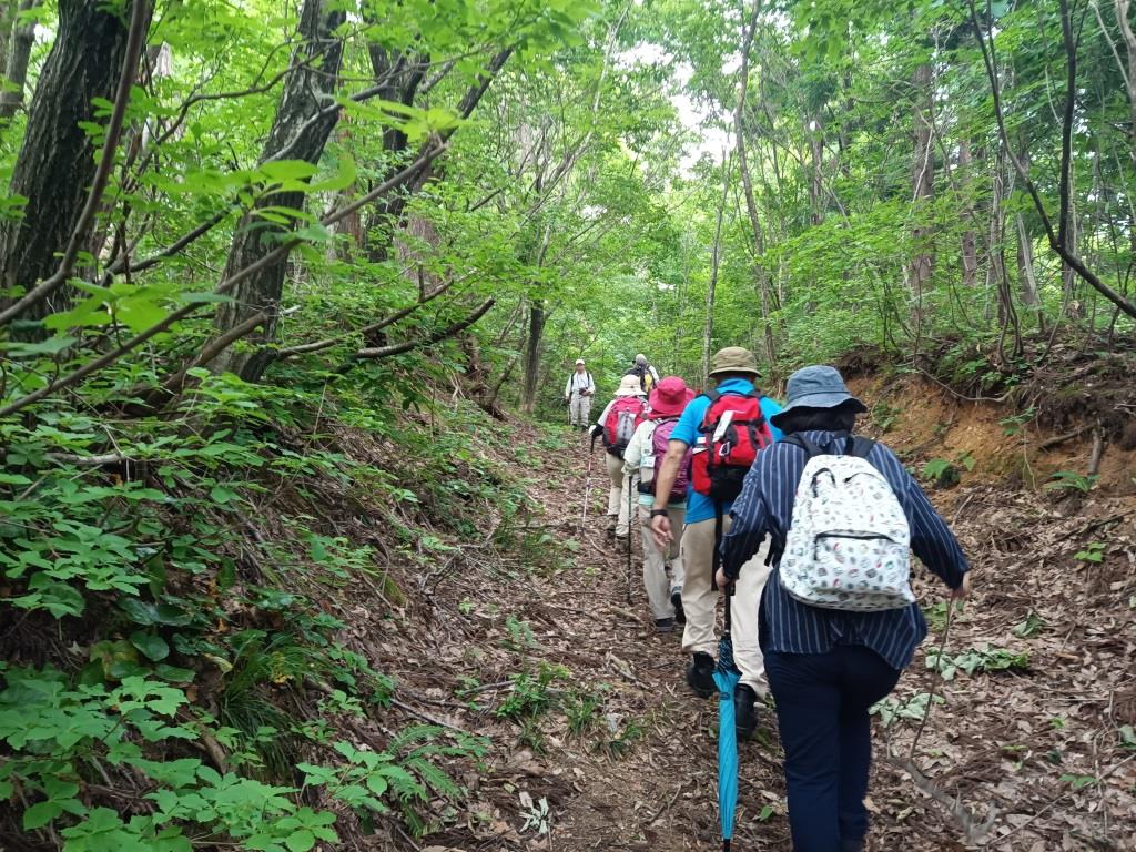 朝は小雨がぱらつきましたがその後は晴れ、少し暑いくらいの陽気のなか、中ノ俣牧場跡地までの約8kmを歩きました。