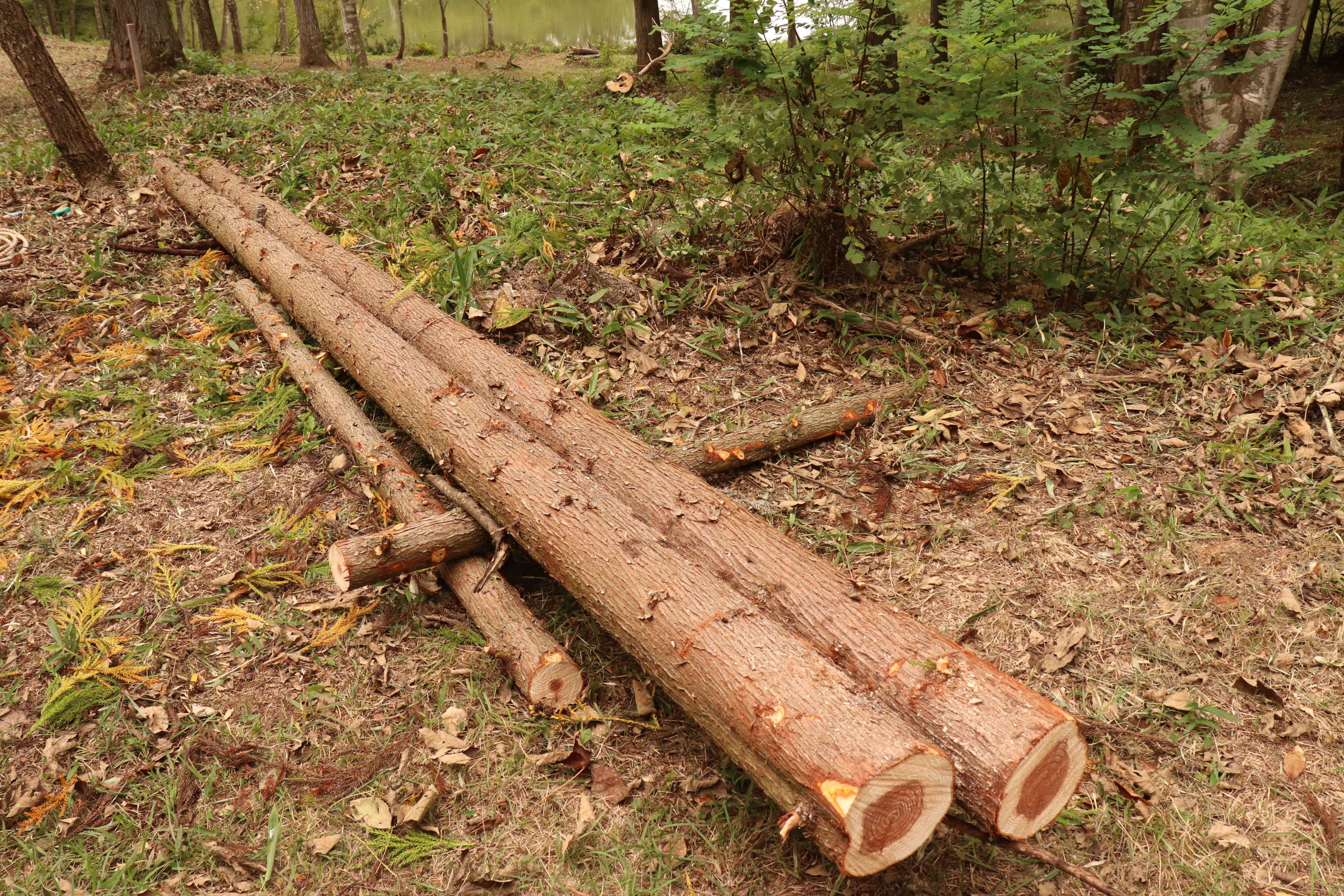 さっそく杉の木を倒したり、階段の修繕をしたり、生き物調査をしたりしました。