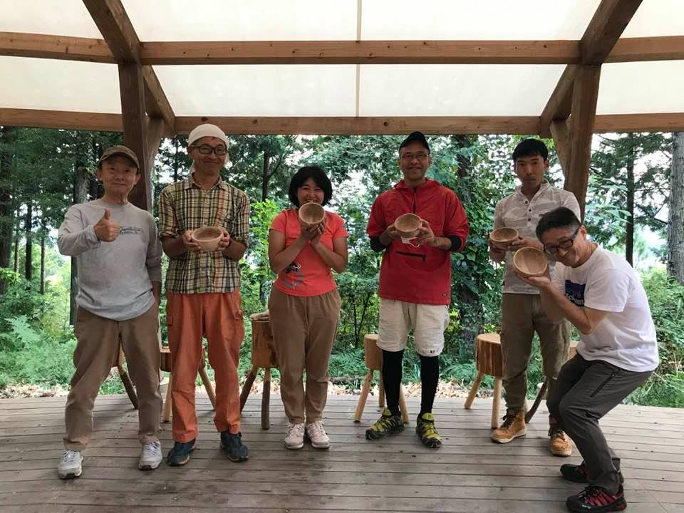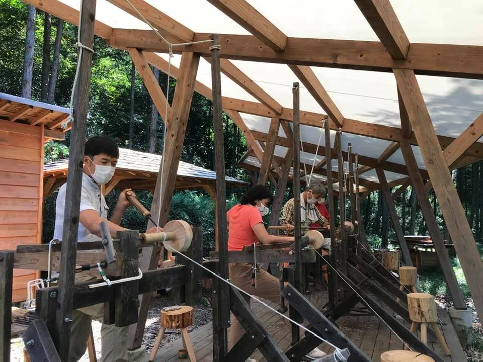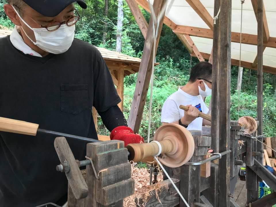 久しぶりの森の中で1日ろくろをふむ、木の器づくりになりました。