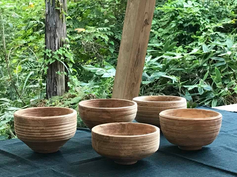 足踏みろくろで生木を削って、小さなボウルをつくりました。