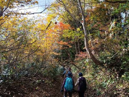 上綱子集落から峠を1つ越えて中ノ俣に入り、中ノ俣城址や俵隠し、角間の棚田等を巡る中ノ俣古道の周遊コースを歩いた後、さらに峠を1つ越えてくわどり湯ったり村まで歩きました。