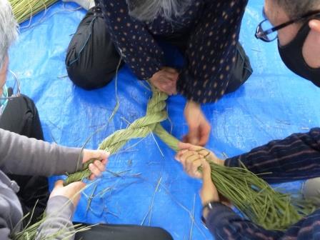 アンコの入れ加減が難しかったようですが、3人一組でそれぞれ立派なしめ縄を作り上げていました。