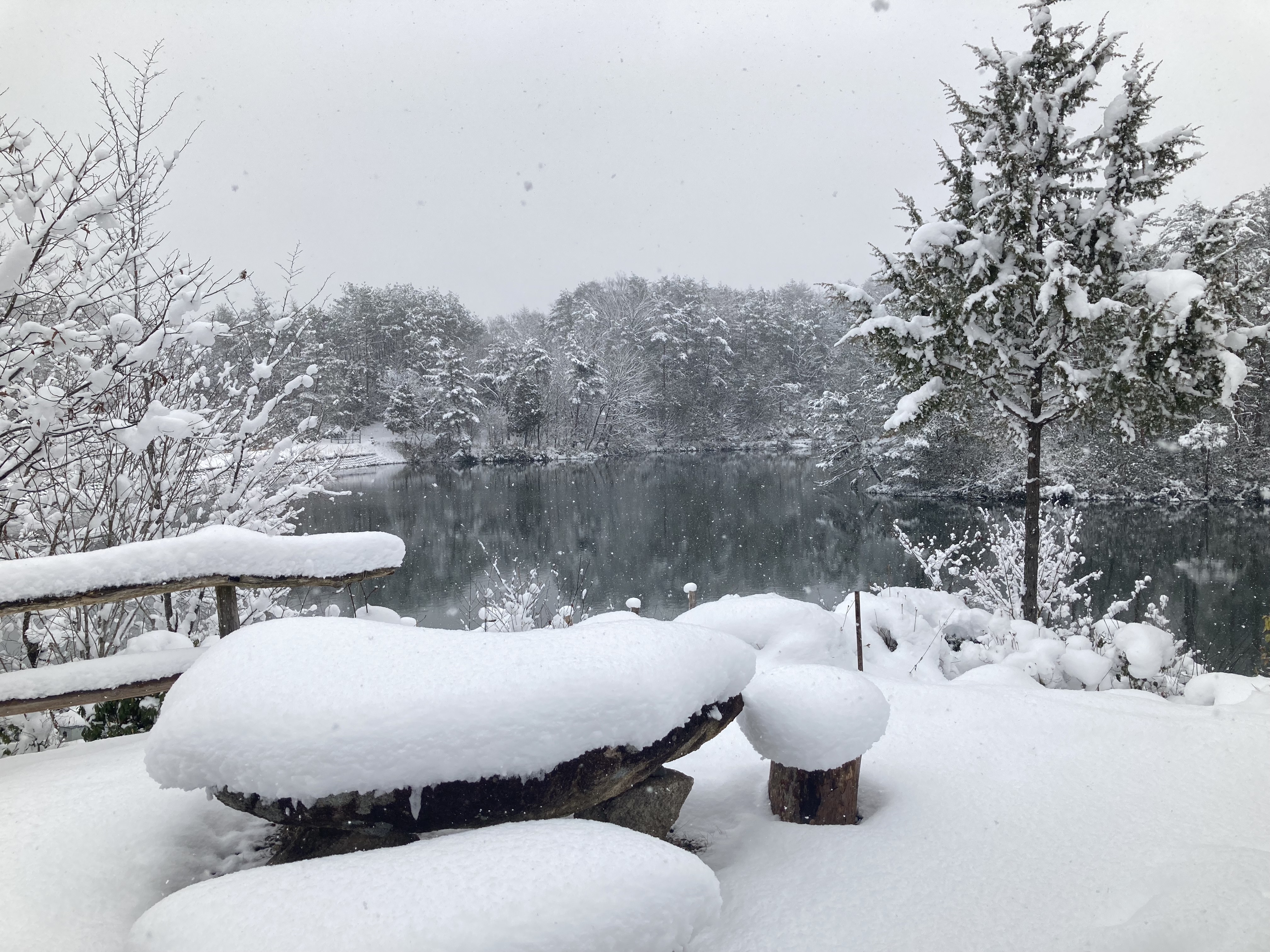 森の学校は、雪が積もったり、万代池が凍っていたり、冬でも毎日様子が違います。そろそろ雪かきをする日も近そうです。