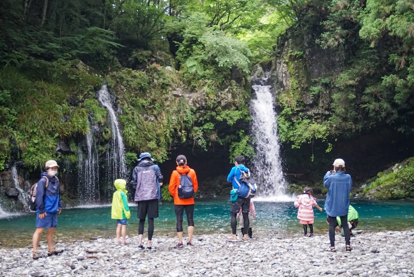 現地に到着し親子で滝を見たり、水の透明度や冷たさを感じたりした。
