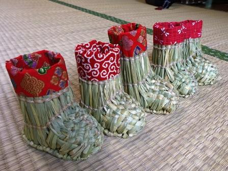ぞうり作りの治具を活用して、普通サイズを作る時よりも楽に作業できるようにしました。