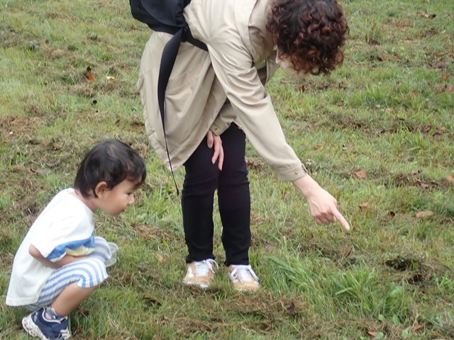 親子は「虫と昆虫の違い」や「昆虫の分類」を座学で学んだ後、芝生広場で昆虫採集をしました。
