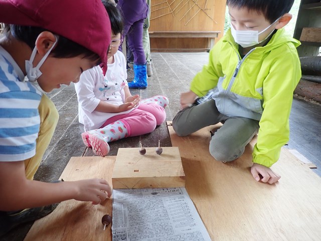 10月「ろうきん森の学校自然体験活動」を開催しました♪ 2022 11/30 福島地区 活動報告 2022年11月30日 どんぐりには、いろいろな種類があることを実際に触って見た後、観察路でどんぐり拾いをしました。 まだ枝に残っているどんぐりもあり、子ども達は大喜び。 拾ったどんぐりは、「どんぐり工作」で、やじろべいやコマに大変身! 詳しくはコチラ 福島地区 活動報告 1月『Whole Earth Essence 「山の恵み」』を募集中! 1月「ろうきん森の学校自然体験活動」を募集中♪ 関連記事 8/27【福島】真夏のろうきん森の学校自然体験活動。セミの抜け殻から自然の姿が見えてくる。 7/26【福島】今日の湯の岳自然学校は、なんと夜の森へ!生き物が見せる、神秘的な夜の姿。 6/15【福島】ろうきん森の学校自然体験活動。雨だけど、不思議な葉っぱとじっくり向き合ったよ! 9/6~7【富士山】「WENSリーダーズ ~9月・宝永火口トレッキングと環境整備~」を実施しました! 6/14~15【富士山】「WENSリーダーズ ~6月 湧水の恵みウォークと里山テントサウナ~」を実施しました! 8/23・8/30・9/6【岐阜】全3回、材料の制作から「すべてやる」竹細工講座。じっくり竹と向き合った達成感! 8/16【岐阜】全4回グリーンウッドワーク講座最終回!積み上げた技術が、最終回に活きる。 7/13【岐阜】森工塾 グリーンウッドワークに使う作業台も、自分たちで作ります!