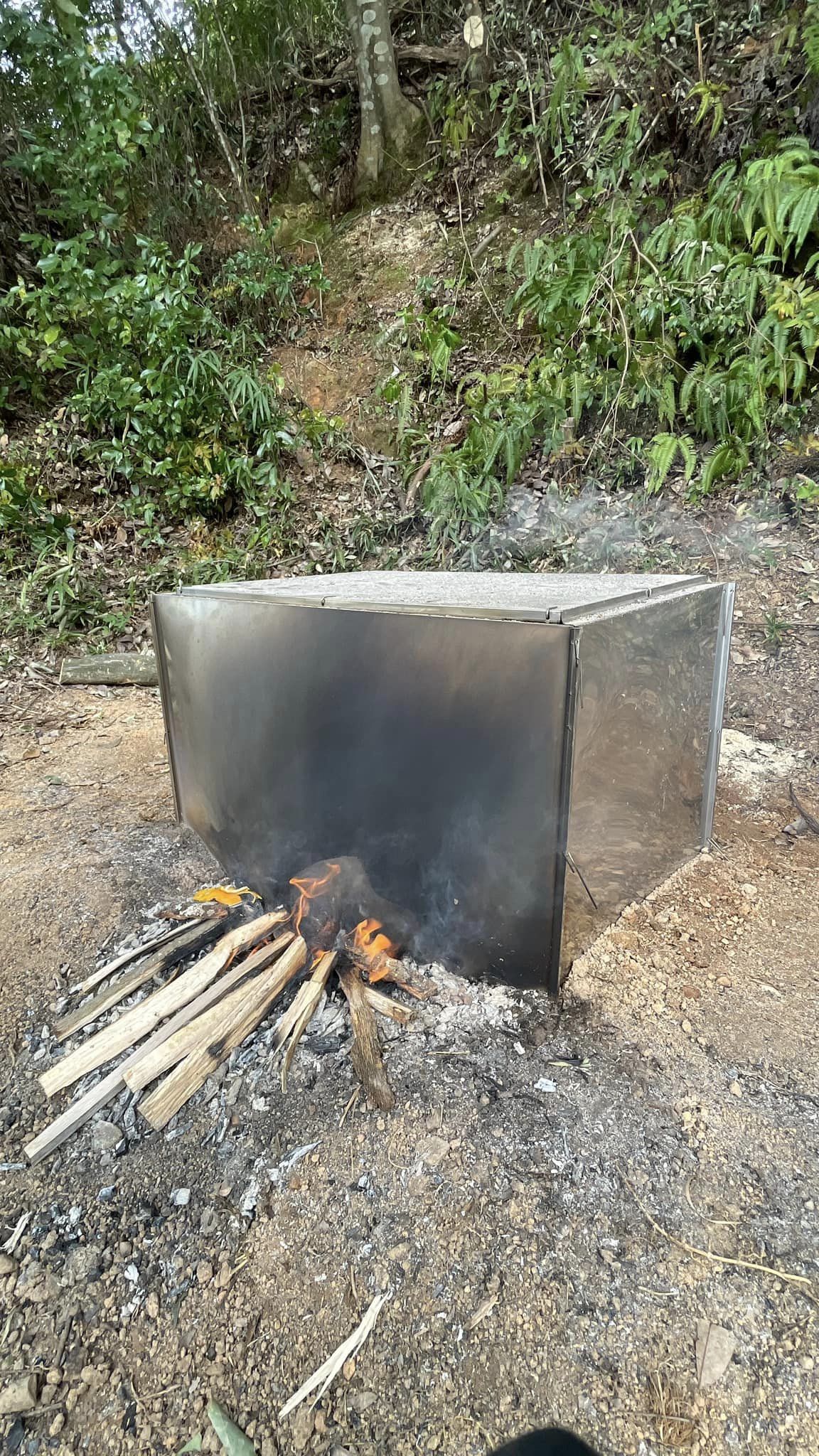 活用できる簡易軽量炭化炉で炭焼きをしました。