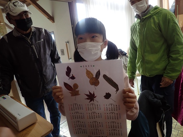 11月「ろうきん森の学校自然体験活動」を開催しました♪ 2023 1/01 福島地区 活動報告 2023年1月1日 今回の大きなテーマは、落ち葉で来年度のカレンダーを作ること。 観察会でいろいろな形や色の葉っぱがあることを見て、集めておいた落ち葉を選んでデザインを考えました。 世界に一つのカレンダー。 来年は年になりますように。 詳しくはコチラ 福島地区 活動報告 2月5日『里山つなぎ隊~耕作放棄地対策~』を募集中! 2月「ろうきん森の学校自然体験活動」を募集中♪ 関連記事 8/27【福島】真夏のろうきん森の学校自然体験活動。セミの抜け殻から自然の姿が見えてくる。 7/26【福島】今日の湯の岳自然学校は、なんと夜の森へ!生き物が見せる、神秘的な夜の姿。 6/15【福島】ろうきん森の学校自然体験活動。雨だけど、不思議な葉っぱとじっくり向き合ったよ! 9/6~7【富士山】「WENSリーダーズ ~9月・宝永火口トレッキングと環境整備~」を実施しました! 6/14~15【富士山】「WENSリーダーズ ~6月 湧水の恵みウォークと里山テントサウナ~」を実施しました! 8/23・8/30・9/6【岐阜】全3回、材料の制作から「すべてやる」竹細工講座。じっくり竹と向き合った達成感! 8/16【岐阜】全4回グリーンウッドワーク講座最終回!積み上げた技術が、最終回に活きる。 7/13【岐阜】森工塾 グリーンウッドワークに使う作業台も、自分たちで作ります!