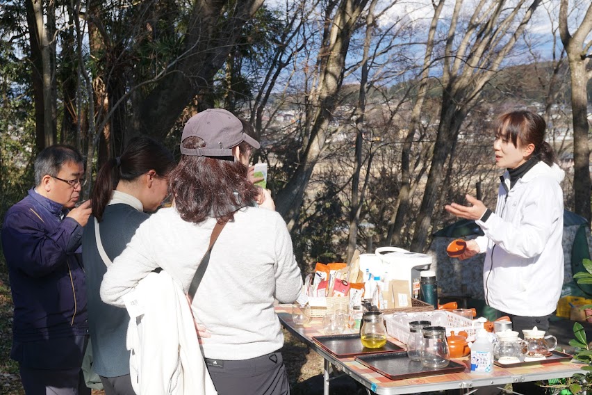 生物多様性をテーマにした敷地内のガイドツアーをはじめ、里山の素材を活かした本格的なピザや、お茶の魅力を伝える装置としてのテントサウナ等、近年ホールアースが特に力を入れているコンテンツを中心に楽しんでもらいました。
