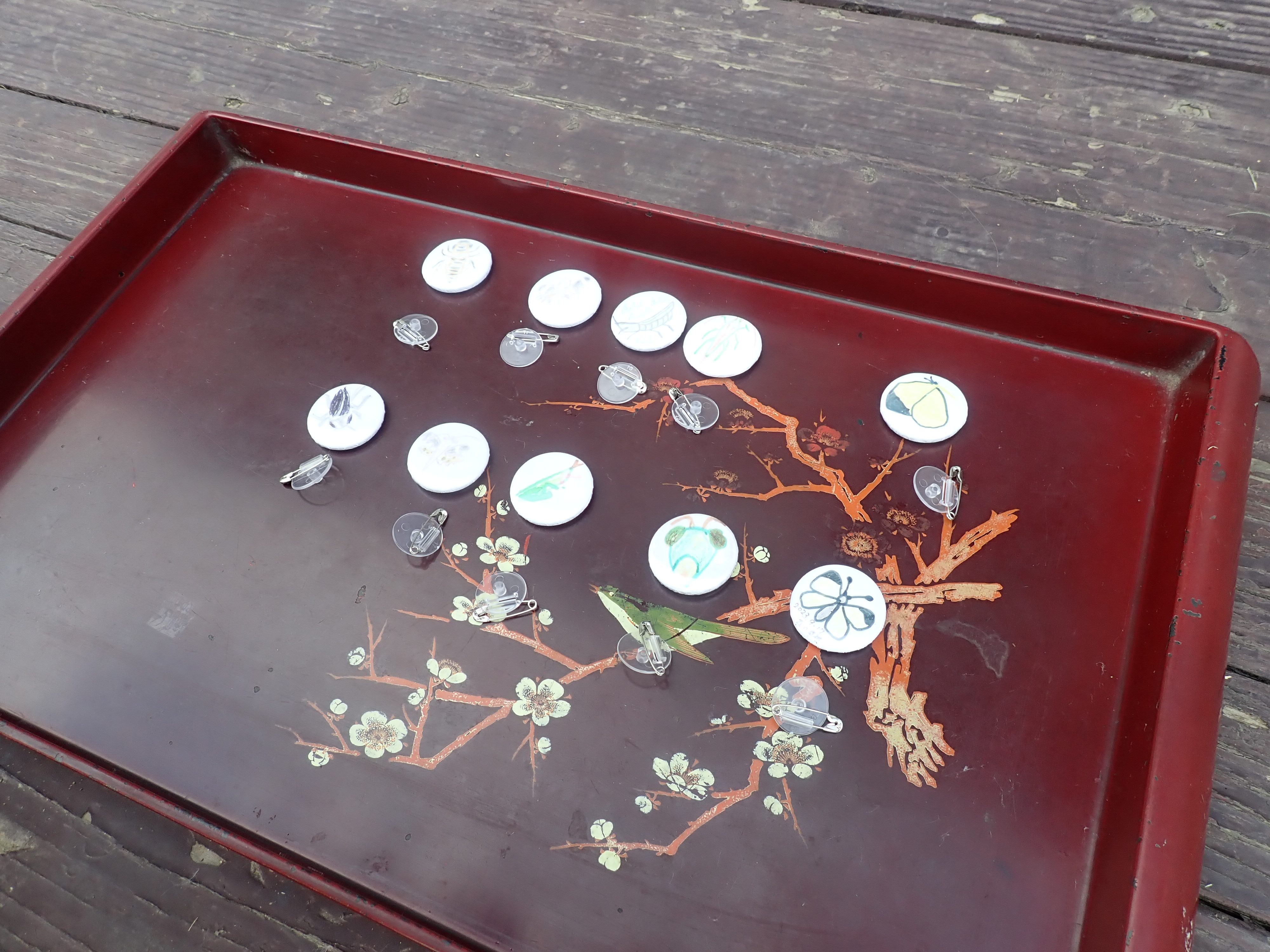 最後に、お気に入りの虫の絵を描き、缶バッチにしました。