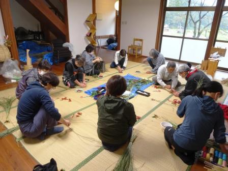また、紫色の古代米の穂を束にして飾りに使うなど、材料を工夫して組み合わせていました。