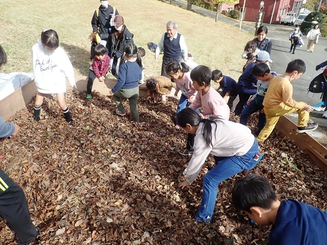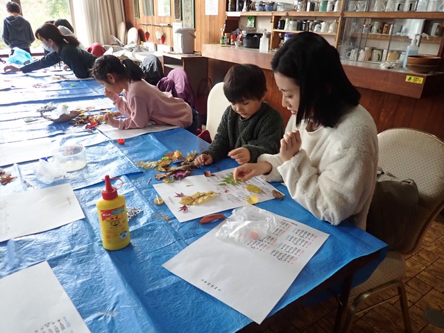 それぞれテーマを決めて、それに合う落ち葉を組み合わせていきます。