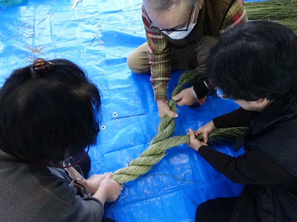 わらの分け方や力加減で、出来が変わってくるのですが、2本目、3本目には慣れてきて、息の合ったチームプレイで作り上げていました。