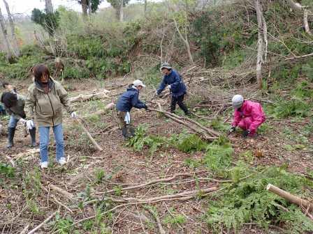 今回は、活動フィールドの整備、春の山菜採りと天ぷら作りを行いました。