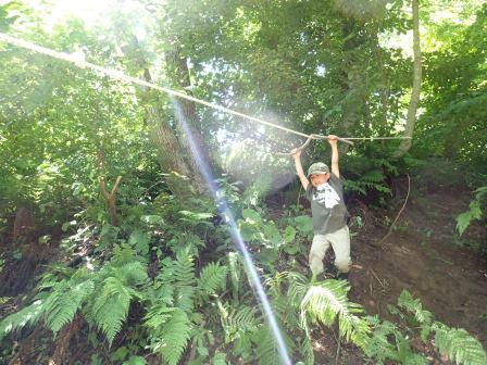遊具作りをする子もいて、ターザンロープやミニジップラインを作り、何回も遊んでいました。