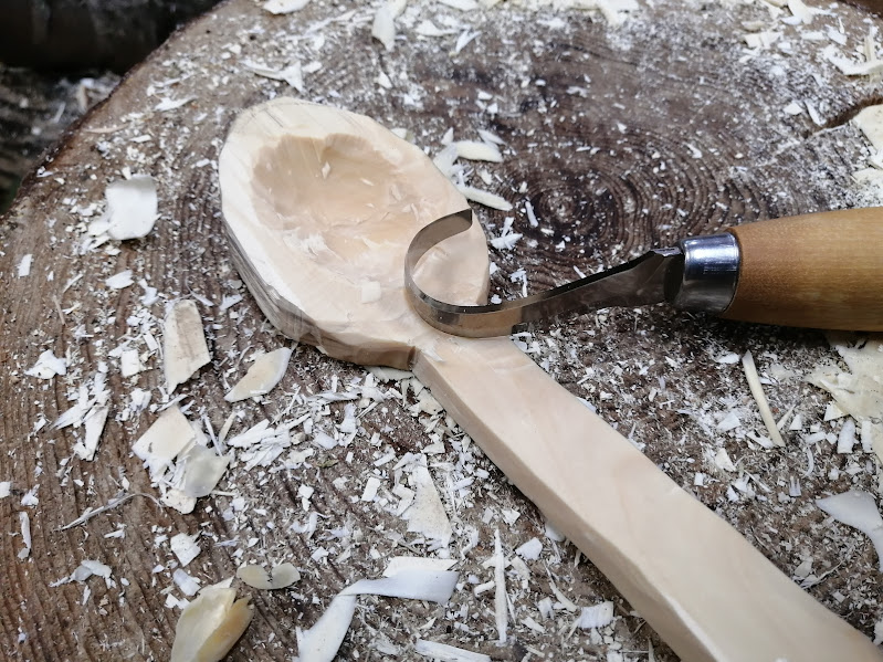 自分たちで伐木をした木を電動工具をあえて使わずに、ナイフと斧で削って