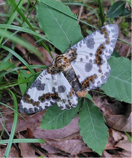 5月29日、なぜか林床にキオビゴマダラエダシャクがとまっていて、じっと動きませんでした。