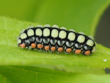5月21日、葉っぱの上にみんなのお気に入りのシロシタホタルガの幼虫が見つかりました。