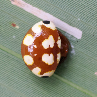 7/24 サツマノミダマシの撮影中に笹の葉に見つけたアカイロトリノフンダマシ(クモ類)