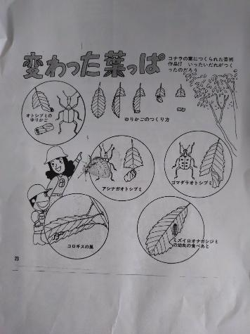 オトシブミはこれまでの自然観察会でも見ることができた昆虫。子ども達は不思議な昆虫の生態に興味を持った様子でした。