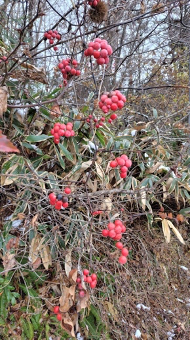 12/4 取り付け道路脇のサルトリイバラの実が赤くなった。