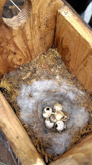 12/25 新しい巣箱を取りつけ古い巣箱を撤去。卵の割れ方からヒナは生まれず放棄されたよう。