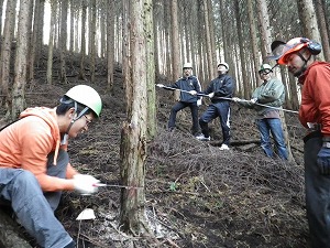 例えば、戦後荒廃した国土を、緑化や木材生産を目指して植えられた、スギやヒノキといった針葉樹。植林されて50年以上経った今、本来であれば収穫の時期に当たるものが多いのですが、適切に管理されていない林では暗く、細い木が多く、台風や雪害による倒木の危険があります。