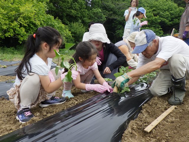 自然体験は「サツマイモの苗植え」体験。 参加者は、農作業班の鈴木さんから植え方のコツを教えてもらい、苗植えを体験しました。 「すずほっくり」という品種。 収穫の日が楽しみです。 詳しくはコチラ -