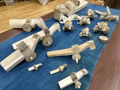 九州地方の代表的な郷土玩具「きじ車」は「木地」で作られた「雉子」 や「馬」をモチーフにしたおもちゃ。 大分から講師を招き様々なきじ車を参考にしながら、グリーンウッド ワークの道具を使って「きじ車」を制作しました。 詳しくはコチラ -