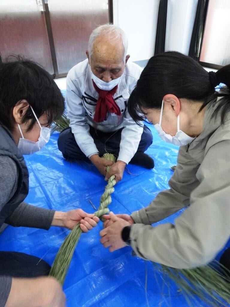12月はクリスマスやお正月準備に、わら細工が大人気で体験会に多くのご参加をいただきました。 わらリースもしめ縄も、3人一組で1つを締め上げる工程は同じです。 わらの分け方や力加減で、出来が変わってくるのですが、2本目、3本目には慣れてきて、息の...